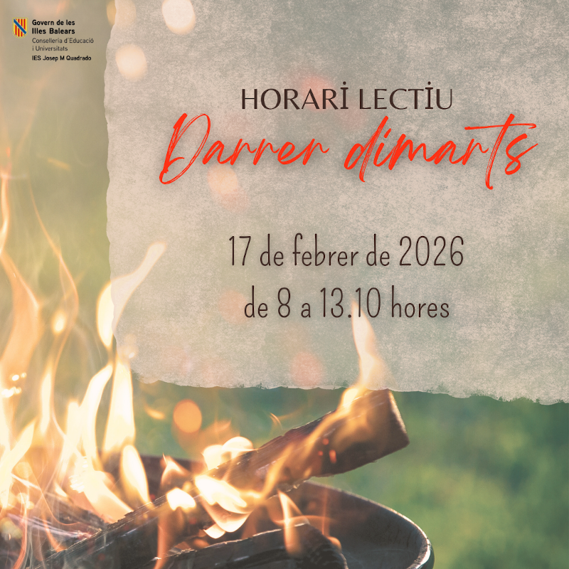 Ja tenim aquí el Carnaval i volem omplir el centre d’alegria, colors i bon rotllo. Divendres 13 de febrer de 2026 t’esperam perquè participis amb la teva disfressa i venguis a passar-ho bé amb tothom. Durant l’hora de pati, ens trobarem al vestíbul, on hi haurà: Organitza’t amb la teva classe o amb el teu […]