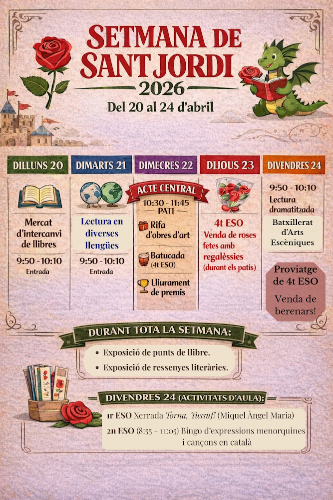 Els passats 28, 30 i 31 de març i dia 1 d’abril, l’alumnat de Tecnologia de 4t ESO del nostre centre va participar en la Fira de la Ciència 2026, en la seva cinquena edició, que es va dur a terme en el Recinte Firal de Maó. Van ser uns dies intensos a on tots […]