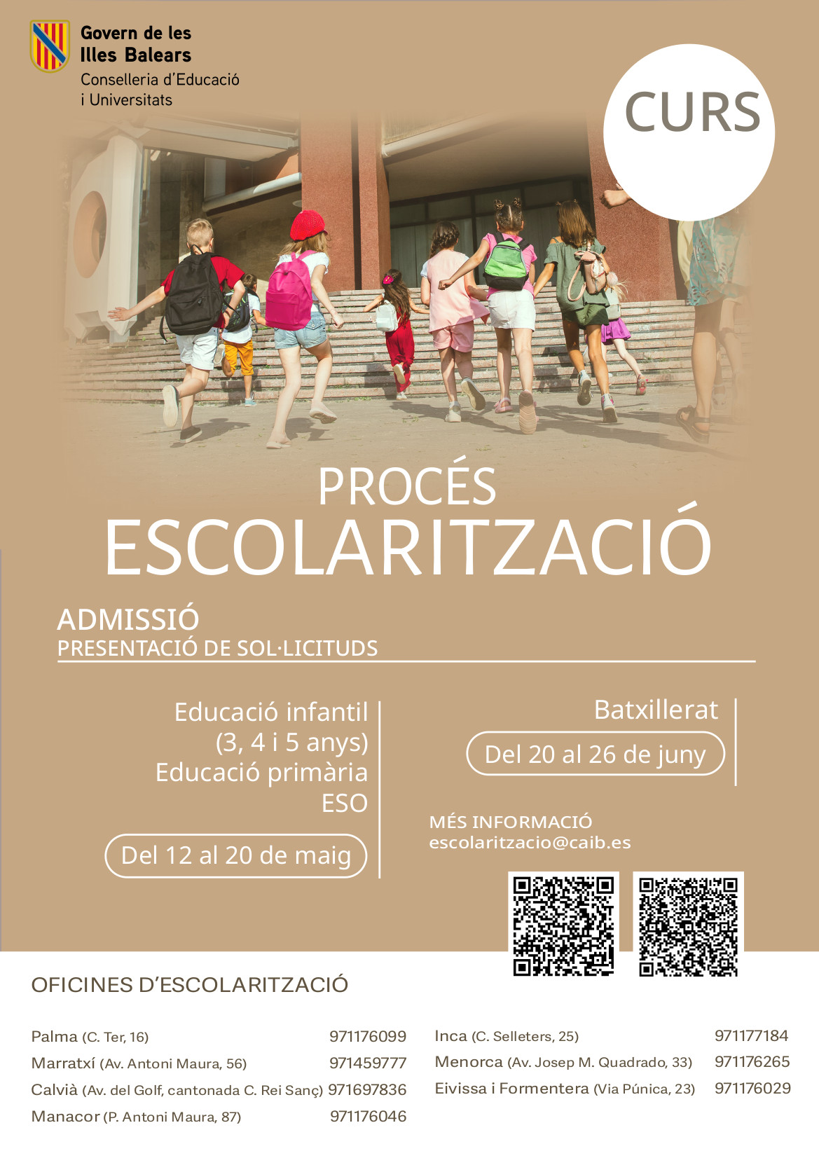 Trobareu més informació del procés a l’oficina d’escolarització de la Conselleria d’Educació i Universitat