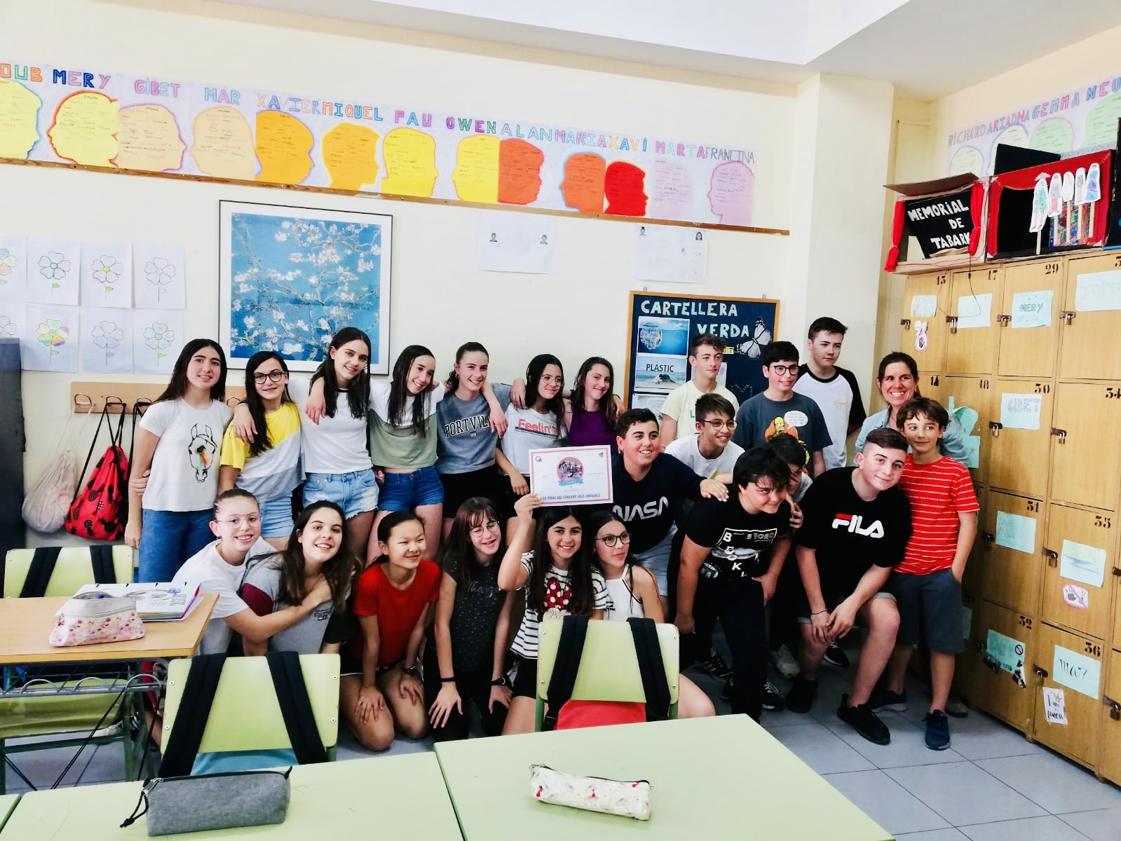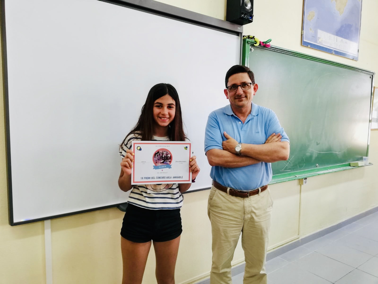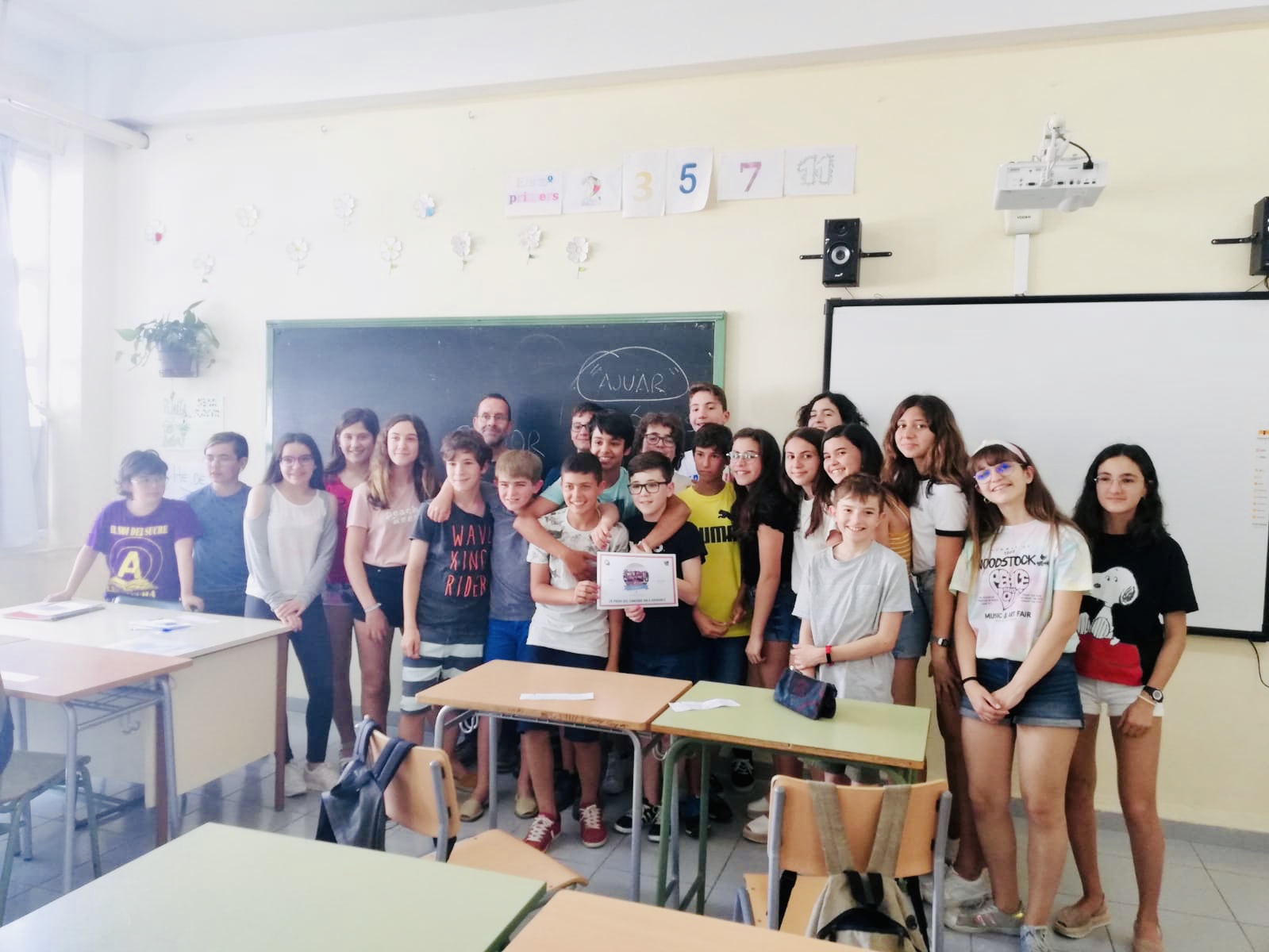 La setmana passada, el director i dos professors de la comissió mediambiental van fer entrega dels diplomes i premis als dos grups guanyadors del concurs Aula amigable. Els guanyadors del concurs d’aquest curs 2018/19 han estat: en primera posició el grup de 1r ESO B i en segona posició el grup de 1r ESO C.