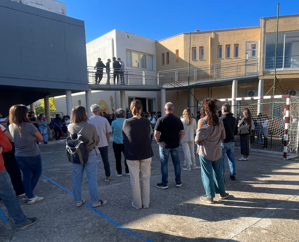 Avui, a l’hora del pati, la comunitat educativa del centre s’ha reunit per llegir un manifest contra l’assetjament escolar i per la convivència als centres educatius. En un acte marcat pel silenci i l’emoció, s’ha fet una crida a dir prou a qualsevol forma de violència o humiliació. El manifest ha recordat que la convivència es construeix amb respecte, empatia i cura mútua, i ha conclòs amb el compromís col·lectiu de fer de la nostra escola un espai segur, acollidor i lliure d’assetjament.