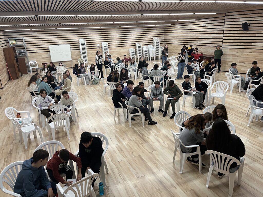 Per acabar la nostra Diada, tot l’alumnat de 1r d’ESO, dirigit per un grup de 1r de batxillerat dins l’assignatura d’educació física, va poder conèixer i gaudir dels jocs tradicionals com la xaranga, la corda, plè, tir amb fona, l’elàstic, dins forta i surt, mèrvols i la puça.