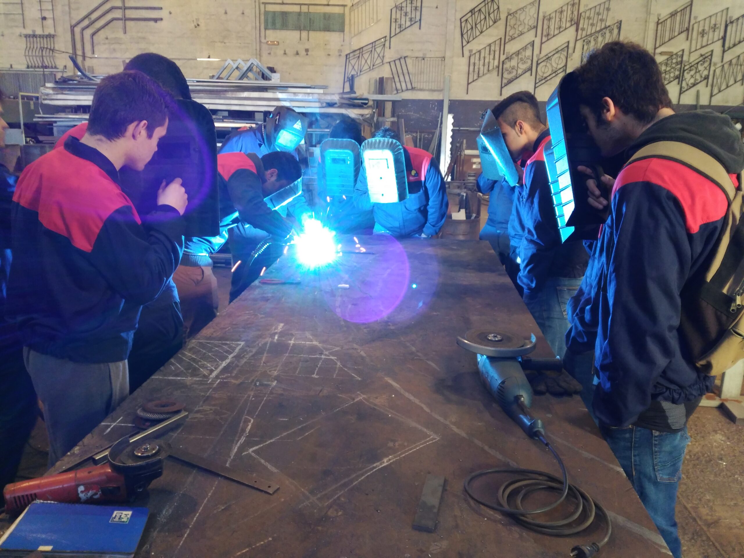 Durant la segona part de la visita ens vàrem centrar amb les tècniques de soldadura més freqüent en aquest tipus d’empresa: MIG-MAG i TIG. Així varen poder presenciar, entre altres, les tècniques d’unió utilitzades per soldar en alumini i acer inoxidable.