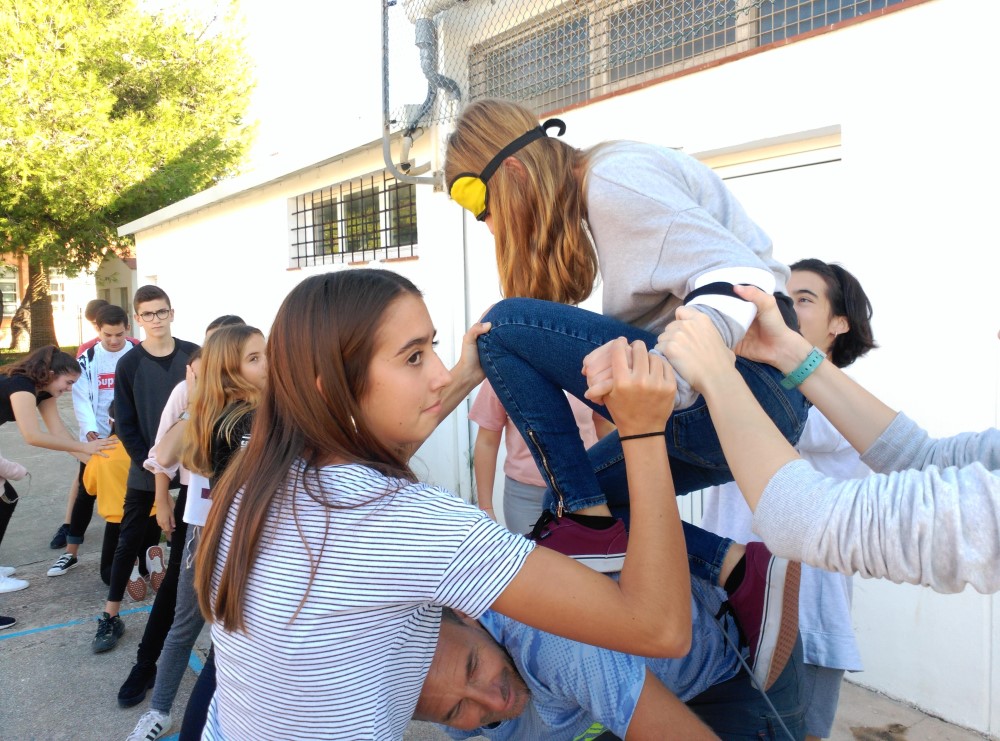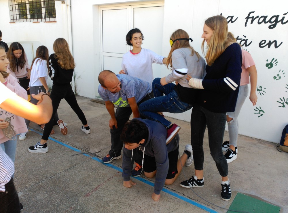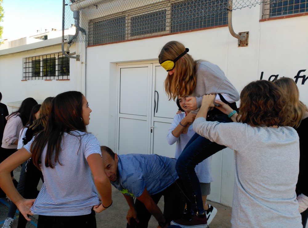 TEI: segona activitat de cohesióPer admin / 26/10/2018 / 2018-19 TEI Activitat de cohesió 2n i 4t d’ESO: el circuit amb corda. Donant continuïtat al programa de tutorització entre iguals començat el curs passat s’han retrobat tutors i tutoritzats fent una activitat de confiança. ◄ 1 2