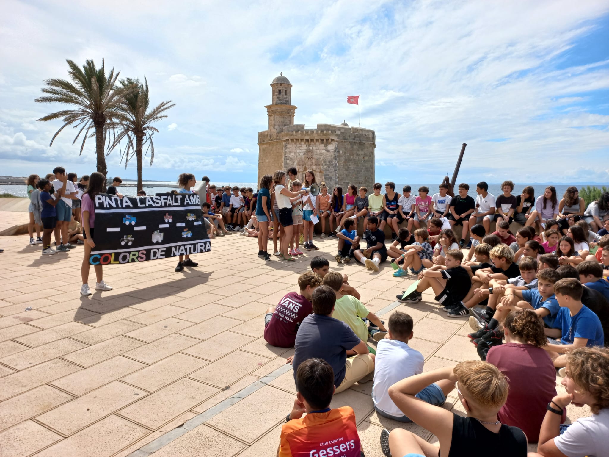 Amb el lema “ Pinta l’asfalt amb colors de natura”, l’alumnat de tots els cursos d’ESO es van reunir a les 13:30h al Castell Sant Nicolau per a llegir un manifest.