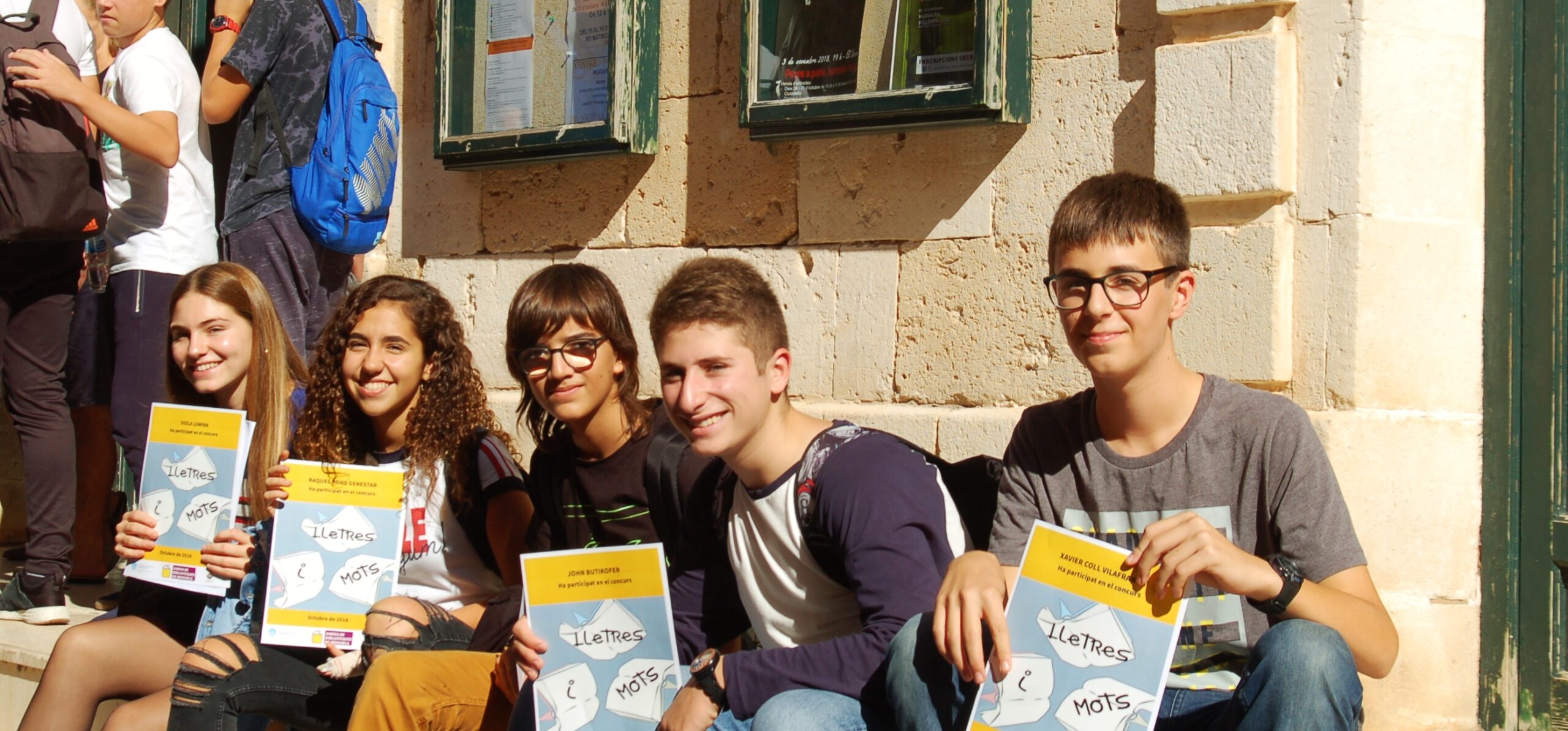 Els nostres 5 magnífics representants del concurs LLETRES I MOTS-2018: Viola, Raquel, Pau, John i Xavier.