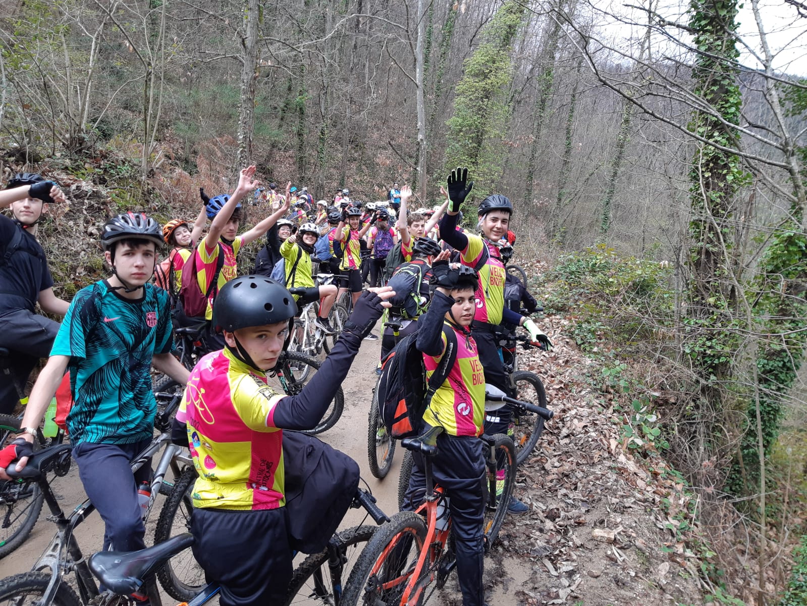 La nit ha estat llarga però els i les alumnes s’han portat molt bé i algun o altre s’ha despertat amb alguna sorpresa de bon matí… Erem dalt les Mines d’Osor amb un bon fred i pluja. Les previsions s’han complert i, per fi, hem pogut tornar a vogar. Hem berenat de pa amb nutella i un bon colacao (els fillets i filletes encantats) i prest hem posat les velos a to per poder començar la ruta alternativa que el dia anterior havíem pensat. Així doncs, hem pujat a Osor fins el coll per un camí que no ha deixat indiferent a ningú…10 km de pujada des de les Mines fins a dalt. Un cop allà hem berenat i, de seguida, hem baixat ja que la temperatura havia canviat totalment i amenaçava aigua. I, així ha estat, al cap de pocs kilòmetres de baixada la pluja ha fet acte de presència per quedar-se fins a l’arribada a l’instiut on la policia ens ha acompanyat com de costum. Hem arribat banyats però contents i orgullosos d’haver superat una altra etapa amb esforç i perseverança.