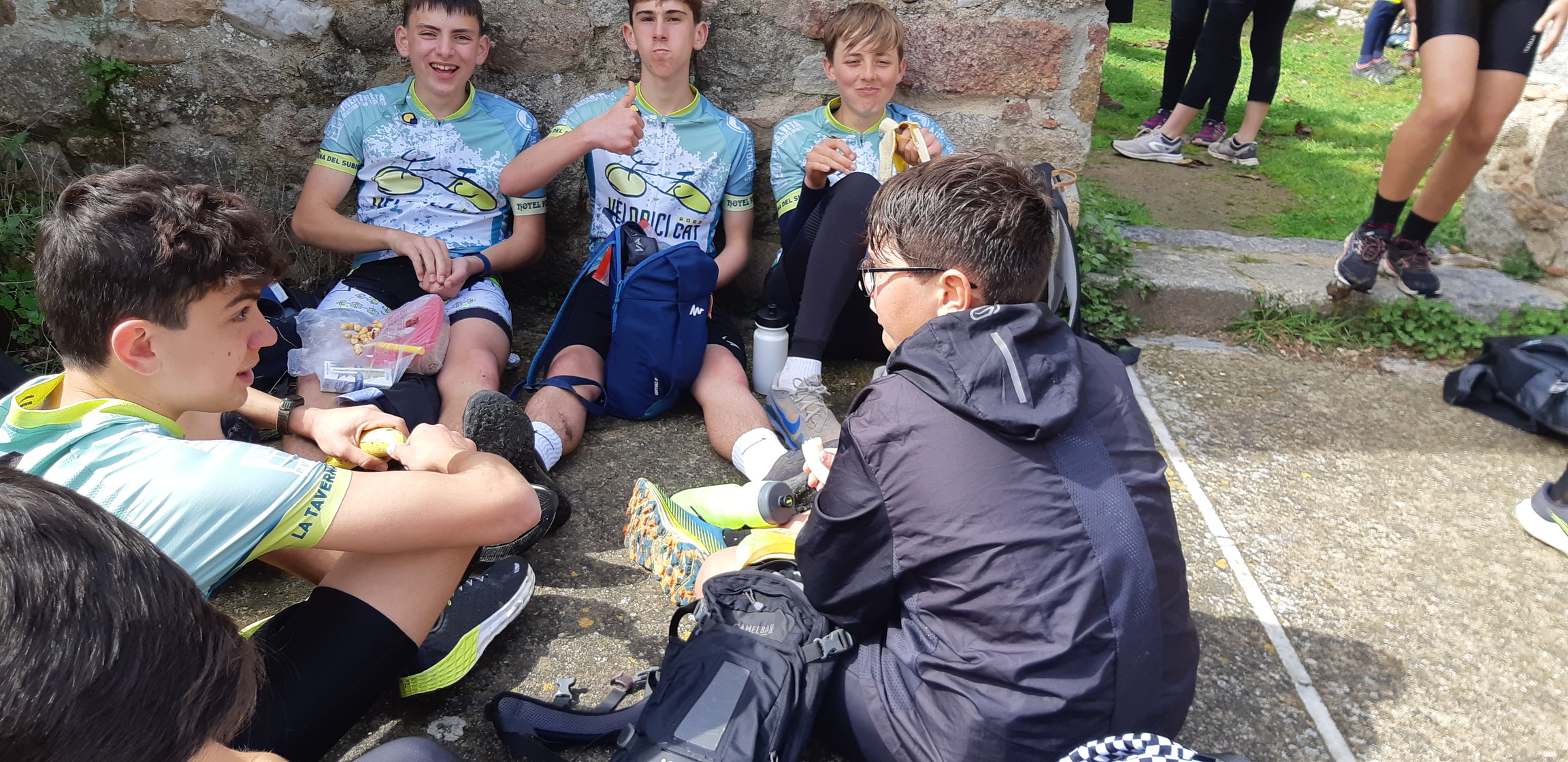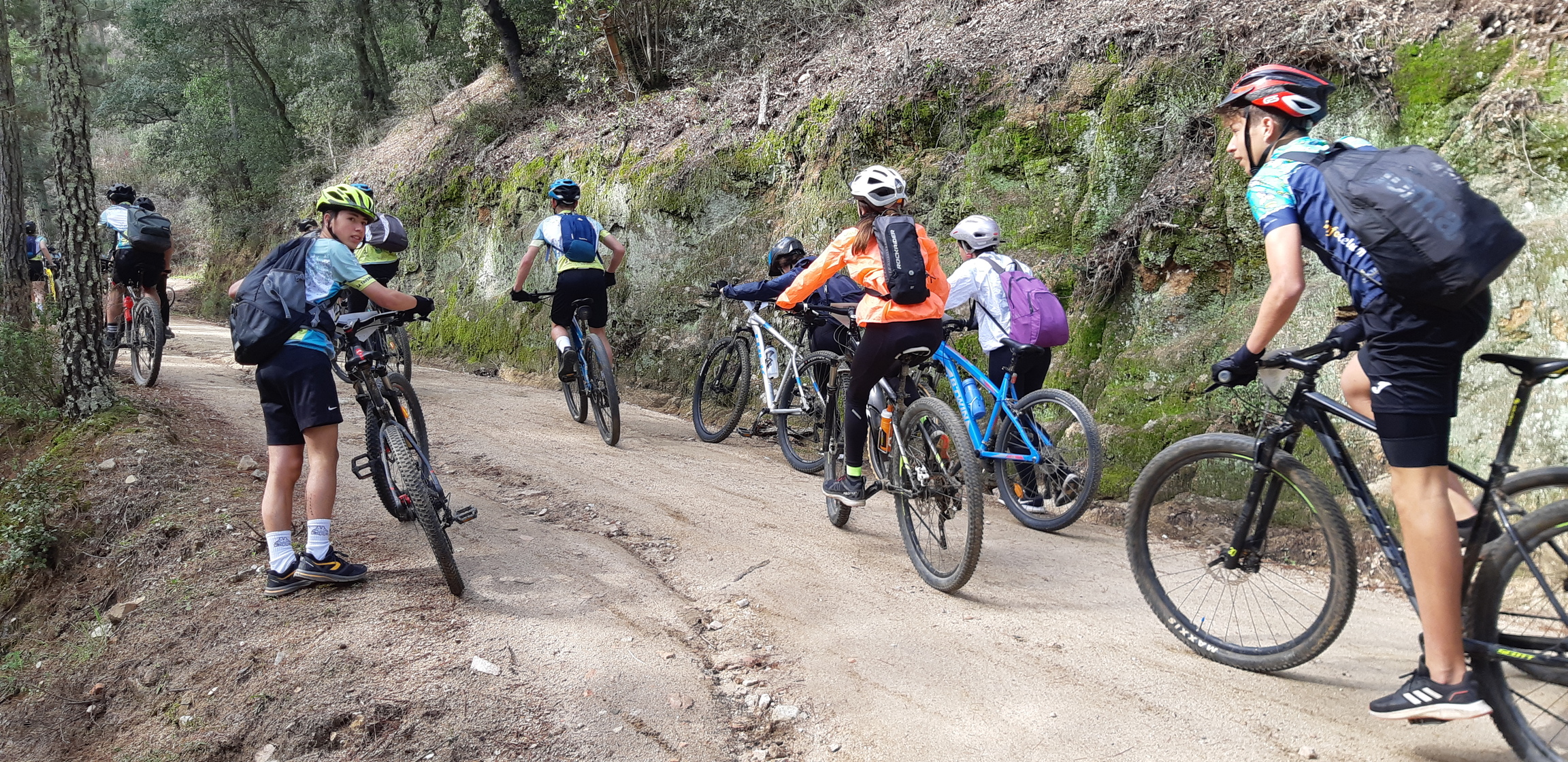 Hem començat amb força vogant amunt els primers turonets i pendents. La veritat és que les pujades empinades no són gaire populars entre els nostres i les nostres joves ciclistes… El millor que tenim és que sabem que després de les pujades venen les baixades! Tot el que puja baixa!