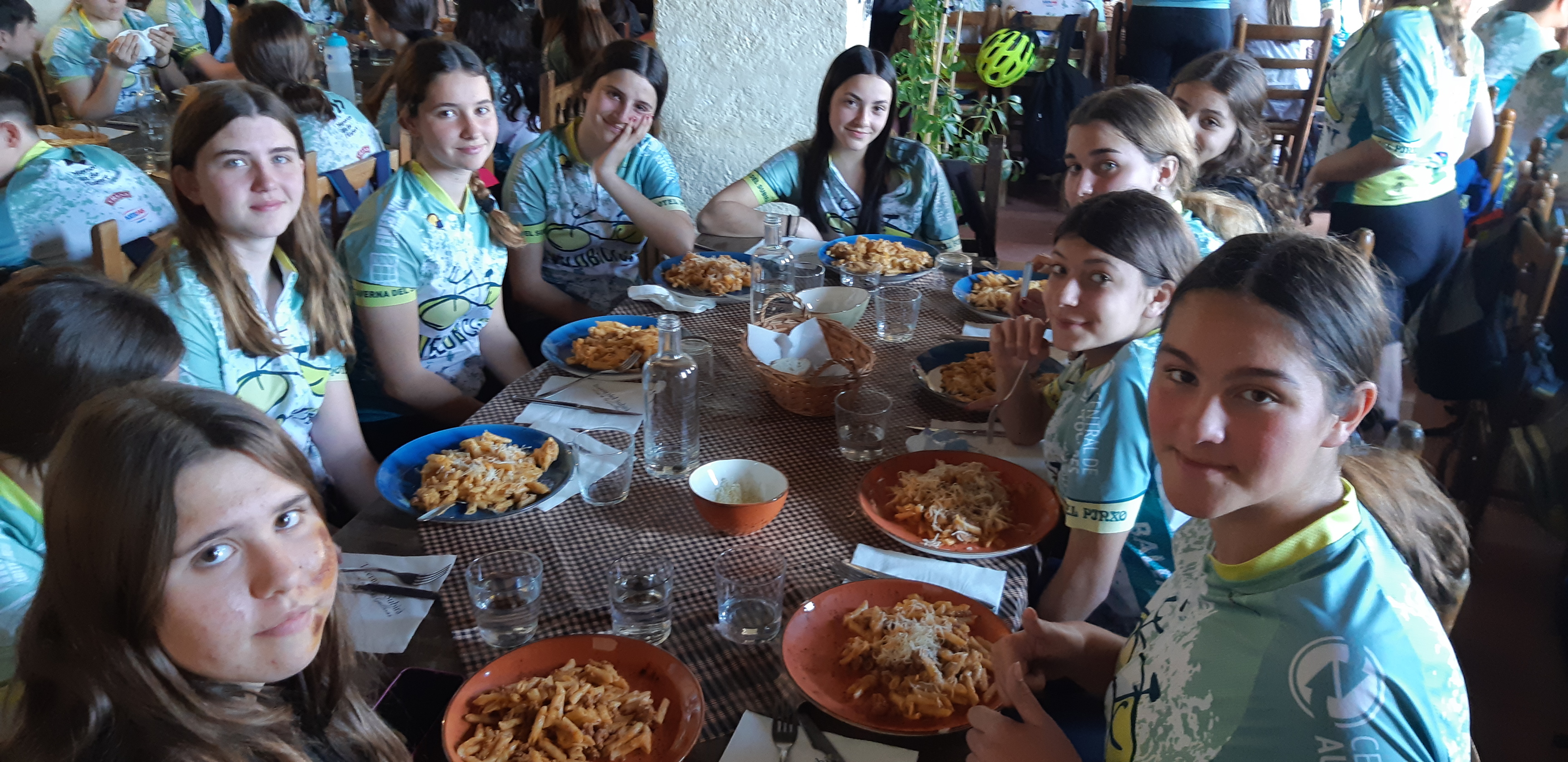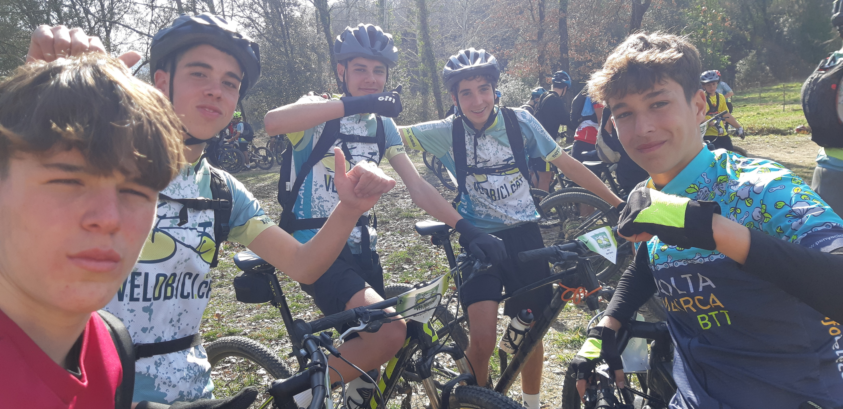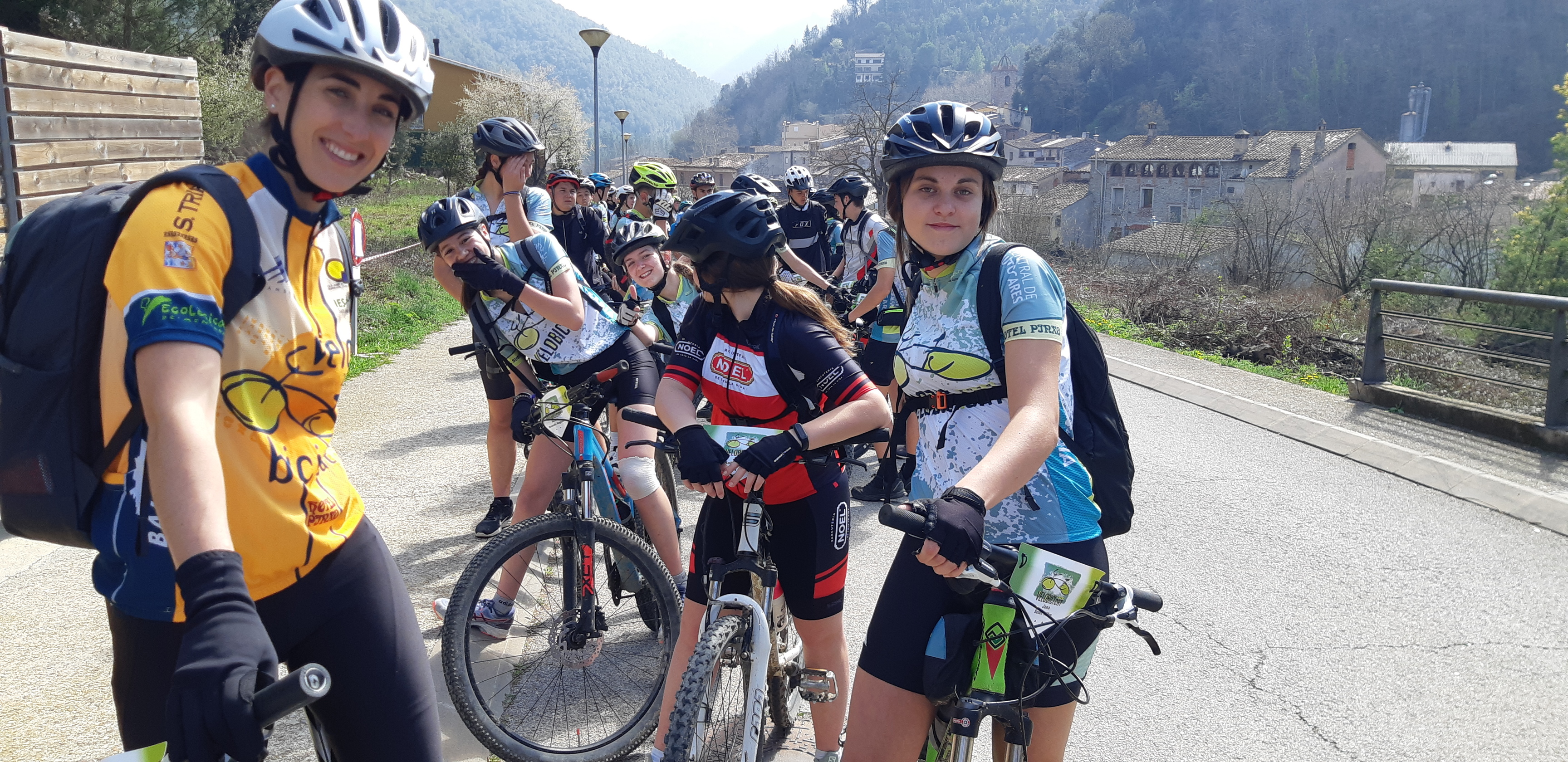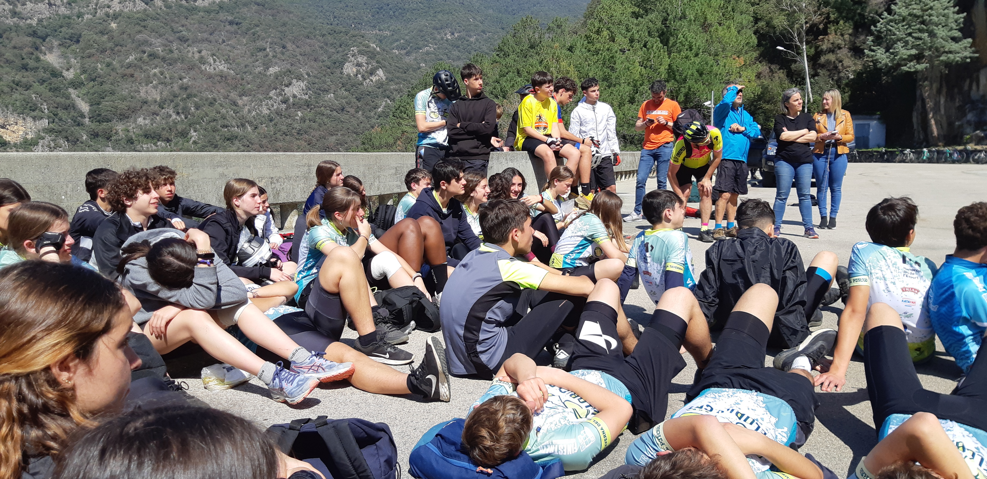 Hem començat amb força vogant amunt els primers turonets i pendents. La veritat és que les pujades empinades no són gaire populars entre els nostres i les nostres joves ciclistes… El millor que tenim és que sabem que després de les pujades venen les baixades! Tot el que puja baixa!