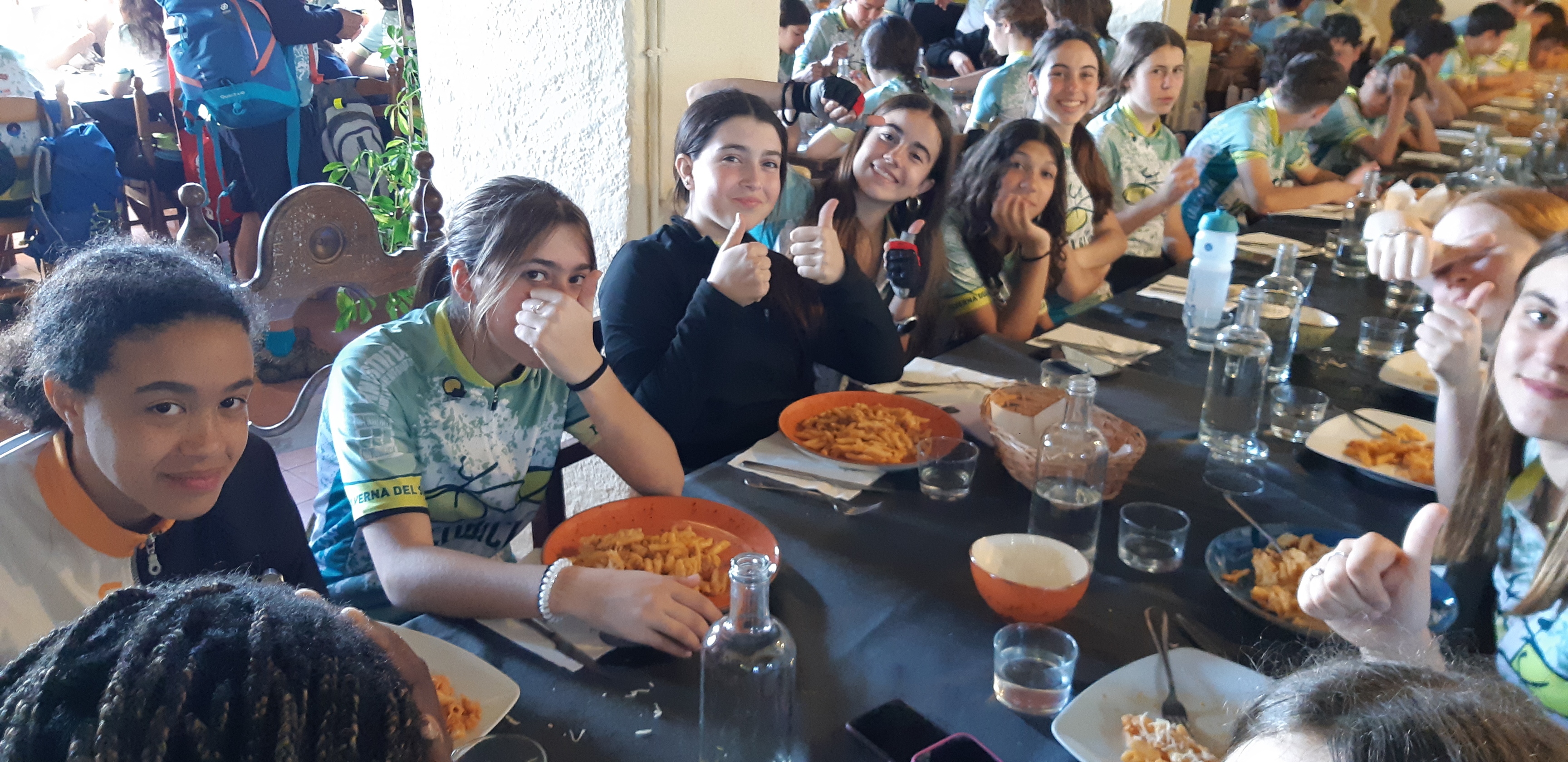 La rebuda al gimnàs de l’institut, amb els pertinents discursos dels nostres amfitrions i les fotos dels aparellaments, van precedir un suculent sopar preparat per les famílies de Santa Coloma. Ja ben bé passada la mitjanit, tots els nois i noies van acompanyar les seves famílies “adoptives” cap a un merescut descans.