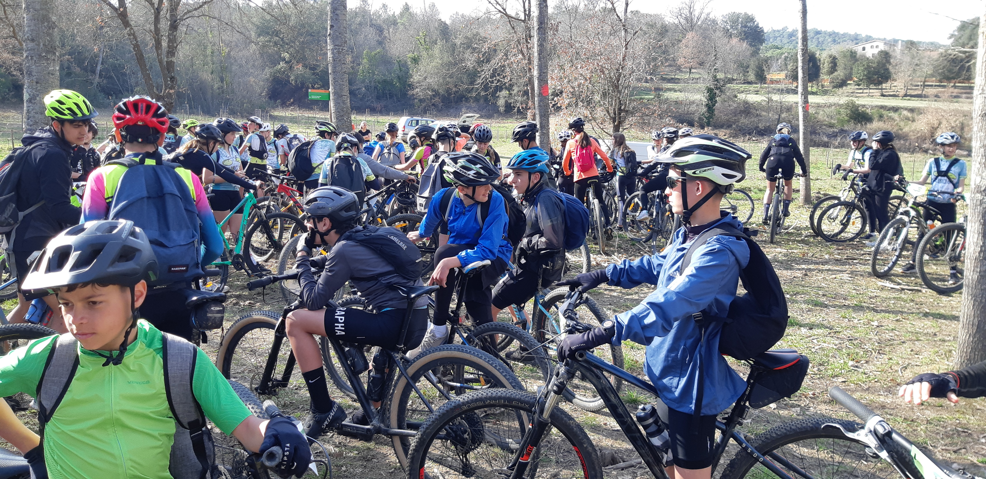 Amb les explicacions enllestides, l’usual repàs a les bicicletes i tornem-hi, a vogar amunt cap al coll de Ruscall acompanyats d’un temps primaveral. Hem de dir que aquest Velobici del 2023 ha estat més calorós del normal, cosa que a la majoria ens agrada! Ja ben prest ens podem anar traient roba!